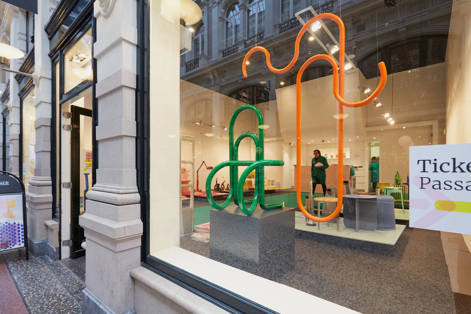 Design Passage was enabled to furnish a space on the ground floor thanks to in-kind sponsorship by a.s.r., owner of De Passage. In the ticket shop at no12, curator Mary Hessing collected objects and products from participating designers, that were selected by color on wooden panels in Linolie. Thus creating an attractive screenshot of the festival with the power of simplicity.